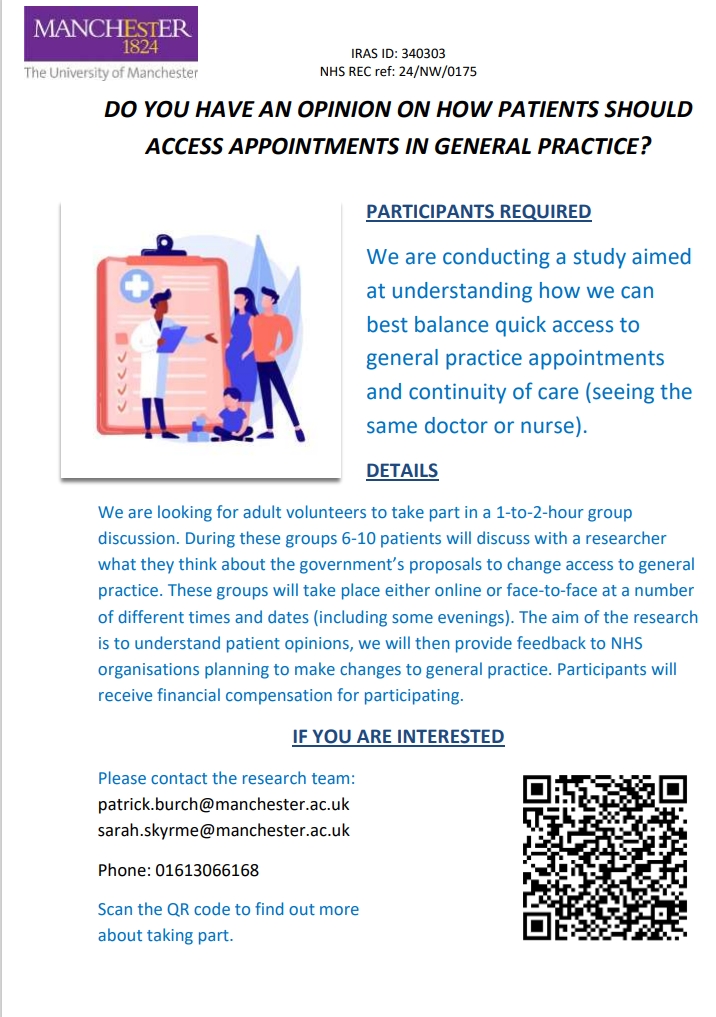 Manchester University Study – How Patients Should Access Appointments in General Practice Posted on: 11th July 202411th July 2024